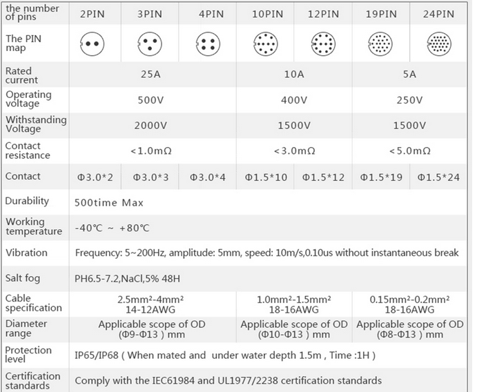 Linko - Model YM-24 -3 Pin Plastic Circular Single Hole Waterproof Aviation Plug Connector