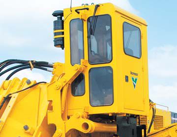 The Roll Over Module (ROM) elevating cab is 40% larger than most other cabs, and features LEXAN glass, filtered and pressurized air, heating and air conditioning, AM / FM stereo, an adjustable foot rest, and a swivel air-ride seat. In addition, it offers a view of the boom, trench, and conveyor.