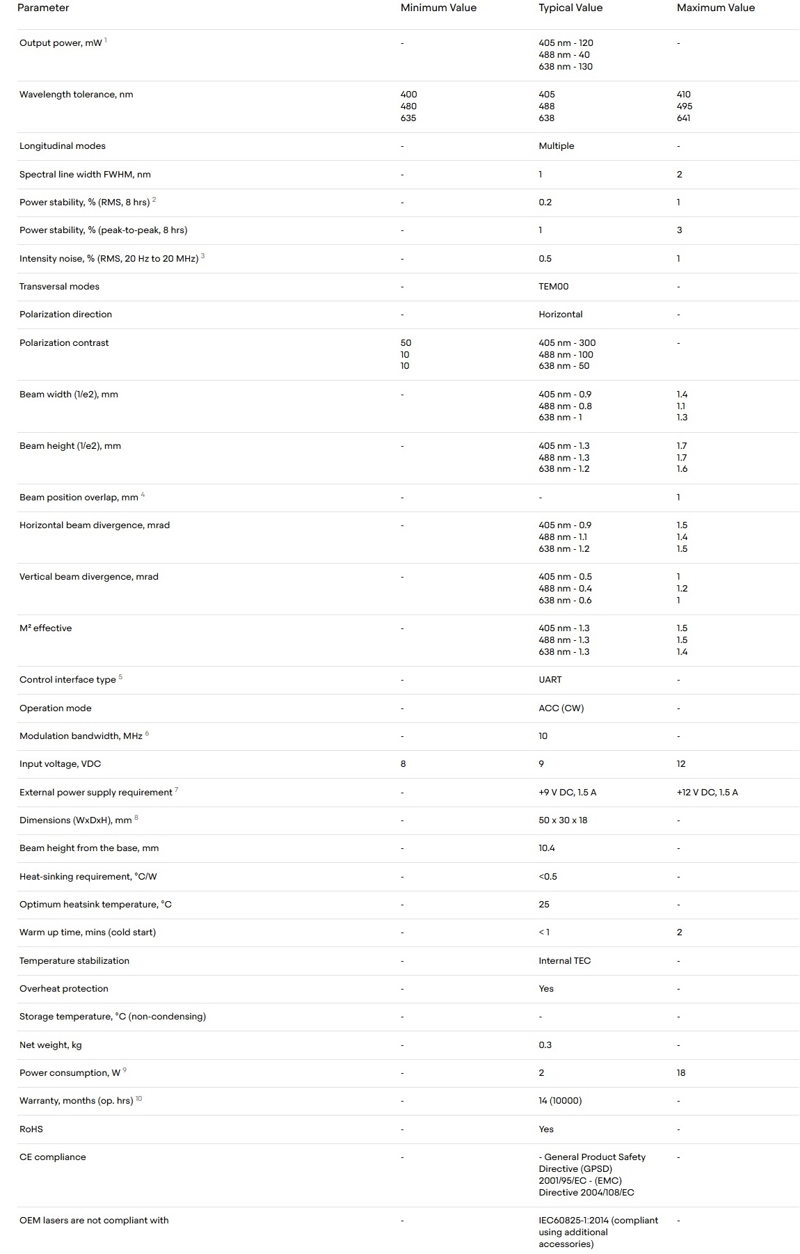 A widely configurable 3-wavelength dichroic laser featuring precisely co-aligned optical paths in a free-space output configuration. All optics and electronics fitted into the ultra-compact `Matchbox` housing. Elevate your scientific endeavors with our state-of-the-art 4-Wavelength Laser Combiner. This compact powerhouse seamlessly integrates four distinct wavelengths into a single housing, providing unmatched convenience without any compromise in performance.