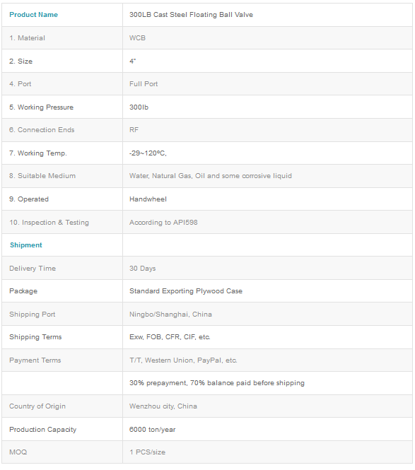 Date Sheet:300LB Cast Steel Floating Ball Valve.