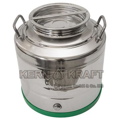 This 30-liter stainless steel oil can is constructed with food-safe materials and designed for applications involving bottling and storing crude oil. It features dimensions of 370 x 360 mm and a weight of 3.5 kg, offering a substantial capacity while maintaining manageable size and weight. The design considerations ensure its suitability for food-related uses, highlighting its construction from durable and hygienic stainless steel. Additionally, the can comes with the option to include a stainless steel ball valve, which enhances its capability for easy dispensing or controlled flow of contents. Its robust build quality makes it a reliable choice for industrial or large-scale food production environments where precision and durability are paramount.