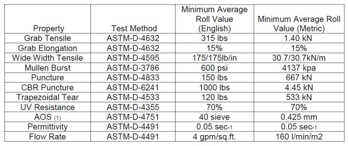 This engineered geotextile is stabilized to resist degradation due to ultraviolet exposure. It is resistant to commonly encountered soil chemicals, mildew and insects, and is non-biodegradable.