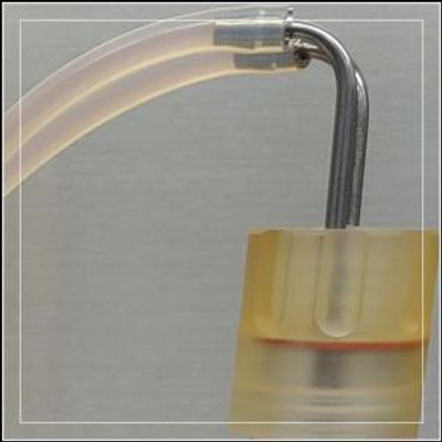 Assembly information: One machined medical grade polysulfone cap with molded-in silicone plug. Two delivery tubes manufactured from 316 L electropolished stainless steel. One .062” thick white silicone gasket to seal the bottle firmly against the cap for leak-proof operation