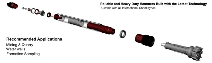 - Single Start threads on Top sub and Drive sub ensure easy coupling/uncoupling of hammer.