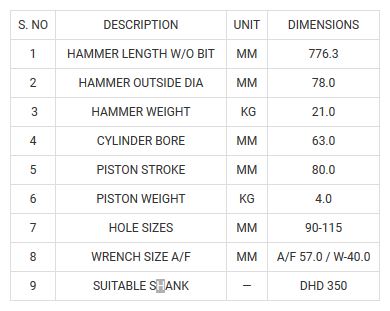 - Hammer to Drill a hole of dia 90 – 115 mm (3 1/2”– 4 1/2”).
