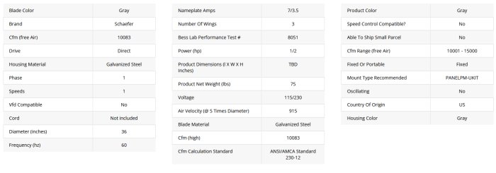 Schaefer - Model 363P12DD -36 Inch Galvanized Direct Drive Panel Fan