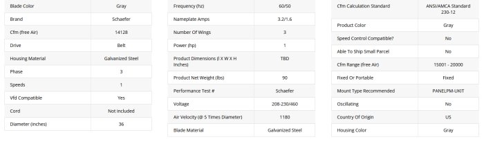 Schaefer - Model 363P1-3V -36 Inch Galvanized Panel Fan