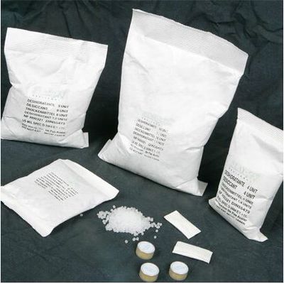 Desiccant, in a carefully calculated amount, is placed into barrier foil bags in order to remove any water vapor that may be present. It may also be used to neutralize those small amounts of water vapor that may be able to pass through the barrier foil.