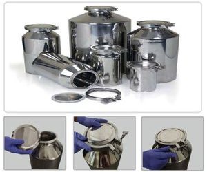Stainless steel containers are offered in AISI 304 as well as AISI 316L material with silicone gasket.