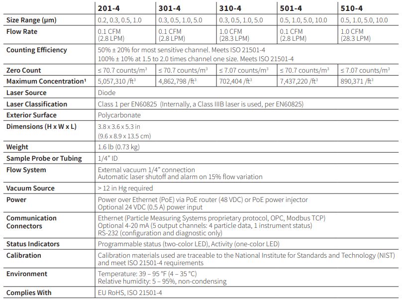 - Compliant by design to ISO 21501-4 and ISO 14644-1:2015