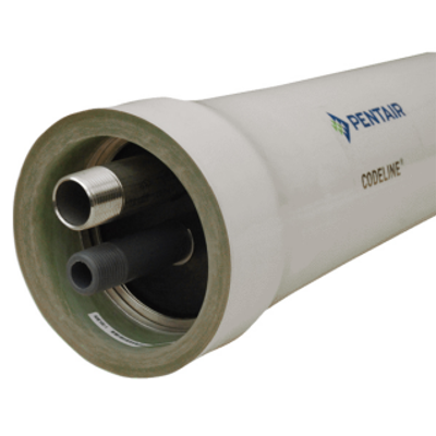 Codeline 40E series has 4” diameter pressure vessel housings with end entry for commercial and industrial RO applications. Available in 300 PSI, 600 PSI, and 1000 PSI models, they are made of durable epoxy/glass composite and fit any standard 4” membrane element.