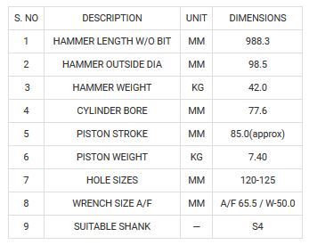- Hammer to Drill a hole of dia 115 – 140 mm (4 1/2”– 5 1/2”).