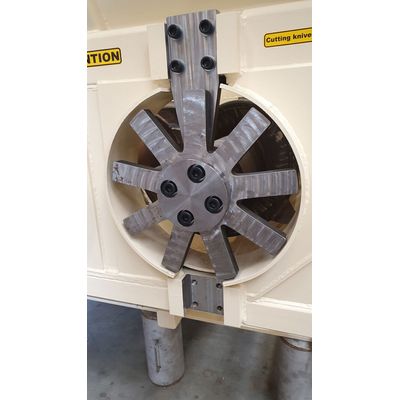 30424-AR730505 – ACTA 4-screw crusher, for processing gypsum waste. Features: Equipped with reverse hopper, loading from outlet side. Equipped with 9 fingers rotation knife + 1 fixed knife (changeable). Painted in customers required color. Reliable gear and motor setup with full control panel.