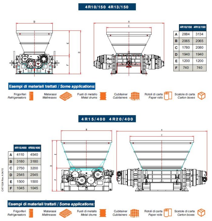 4-shaft shredders are recommended in all those applications where you need to get regulated dimensions of the material processed and to combine power and processing speed.