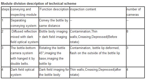 According to the requirements by customers, We has drawn up a 50-70ml white pharma container testing program through experiments and simulation analysis. The main principle is based on high-speed and high-precision visual imaging, coupled with special lighting methods, to visualize and visualize sample defects. Digitization, through the development of real-time detection algorithms to mark the size and location of defects, and comprehensive online defect detection on the appearance of the bottle. The normal detection speed is 3600-4200 bottles per hour. The entrance and exit of the equipment can be integrated with the on-site conveyor line. , The detection of unqualified products realizes online automatic rejection, and the counting function is realized after finished product detection, and the counting accuracy rate is 100%.