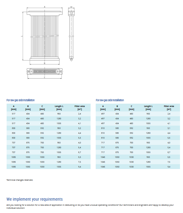 497 - 1065 mm Filter Panel: Low filter resistance. Very easy to clean. Filter media with coating or membrane.