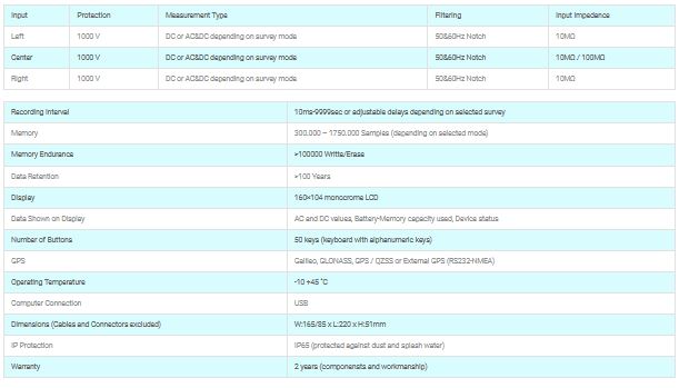 Datalogger: Keep track of 3 different measurements with or without GPS synchronisation. Measure AC and DC values simultaneously for each channel.