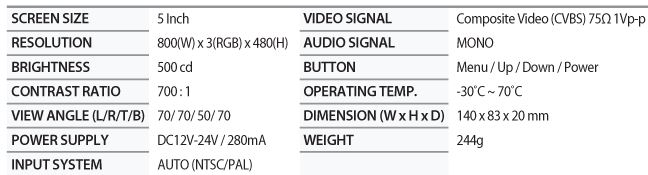 Camos - Model CM-500 -5" Small Type Light-Duty Digital Monitor