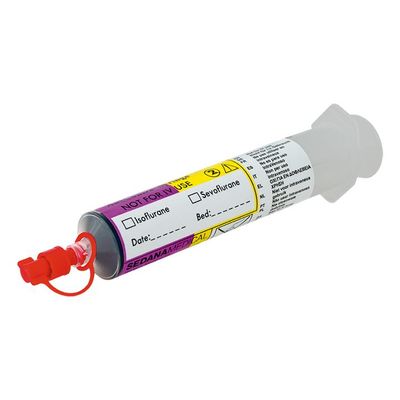 The AnaConDa Syringe is a 50/60ml syringe with a unique coupling to fit the connector on the agent line of the AnaConDa. It should only be used with CE marked syringe pumps which are programmable with settings for Sherwood Monoject or Becton Dickinson Plastipak 50ml (50/60ml) syringes. Syringes can be pre-filled and stored for up to 5 days in a dark environment at room temperature. Always ensure the syringe is safely closed when not in use.