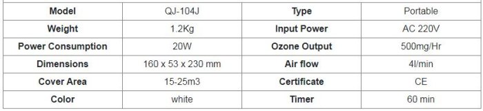 Quanju - Model QJ-104J -500mg Home Use Anion Ozone Generator for Air and Water
