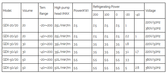 High and low temperature cycling device can provide circulating device of cold source and heat source. It is widely used in medical, chemical and biological industries. It has three systems: refrigeration system, heating system and pre-cooling system. The three systems can work together and independently.