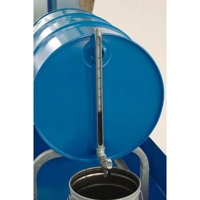 Liquid Level Detector - 55-Gallon - Attaches to 3/4" bung Opening - Zinc Plated - 23 inches High. Clearly shows the remaining contents in gallons. Attaches to 3/4" bung opening. Includes a 3/4" opening for a drum faucet (not included). Zinc plated to resist corrosion. 23 inches high.