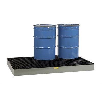 Little Giant heavy gauge steel construction holds up in applications where plastic units just won`t do, either for durability reasons, or when materials being stored are not compatible with plastic. Welded steel bar grating is removable for easy clean-up. Drip channels "hook" units of same heights together to help prevent drainage between units. Optional ramps available in 2 heights. All models help you comply with EPA and OSHA requirements; models with 66 and 99 gallon capacity help you comply with Uniform Fire Code. Low platform height offers easy access to stored materials, easier loading and unloading of drums.