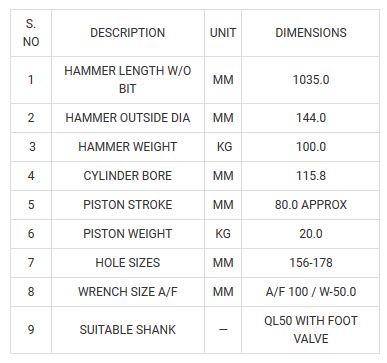 - Hammer to Drill a hole of dia 156-178 mm (6 1/8”– 7”).