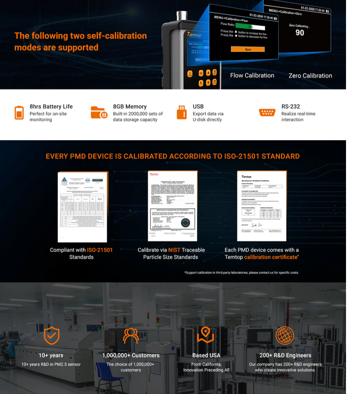 • Particle Size Range: 0.3μm, 0.5μm, 0.7μm, 1.0μm, 2.5μm, 5.0μm, 10μm