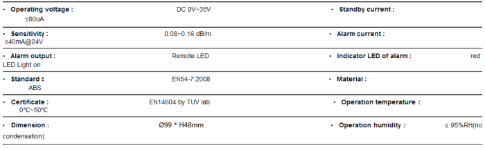 - Certificate EN14604 by TUV lab