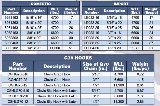 Versatile and quality made chain assemblies offer heavy duty transport securement. All our grade 70 transport chain meets or exceeds National Association of Chain Manufactures (NACM) standards. G70 transport chain is also available in bulk drums.