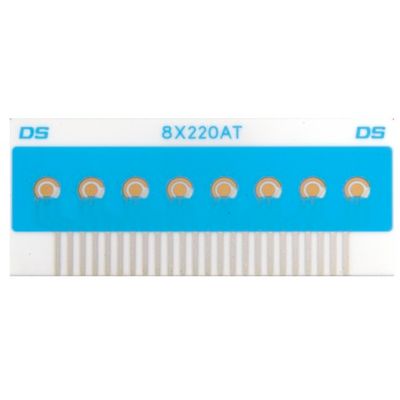 8X Screen-Printed Gold Electrode (Aux.:Au; Ref.:Ag) Screen-printed electrochemical array formed by eight 3-electrode electrochemical cells. Specially designed for the development of multiple simultaneous analysis.