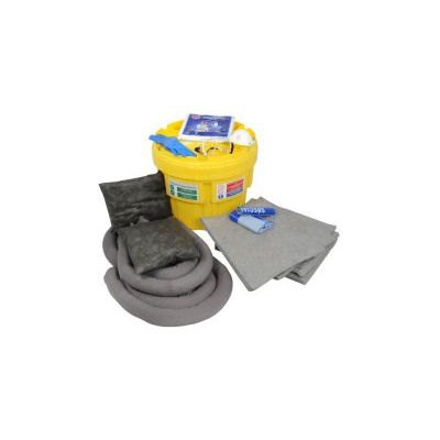 Maintenance Spill Kit designated as grey in colour, designed to absorb solvents, coolants, oils, fuels, mild acids and alkalis as well as water. Contents include Plastic Static Drum Yellow, 4 Socks, 60 Pads, 3 Disposal Bag and 1 Instructions & Contents Card.