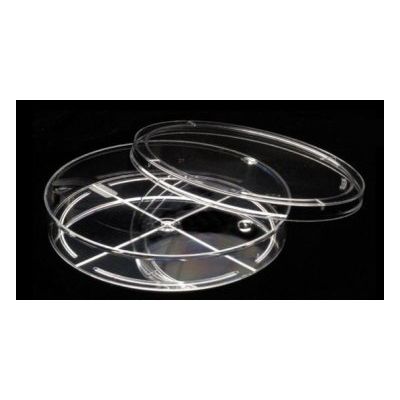 The unique recessed lid on this dish offers excellent stacking stability and space saving. It works with most models of media pouring equipment, absolutely a must for a manual pourer. Four ventilation lugs on underside of lid allow for venting, and prevent condensation from developing and dripping on the culture. The extremely flat bottom allows a reduction in the amount of media required. Patented cross ribs on the bottom make the dish resilient and resistant to warpage when the media is poured at a high temperature.