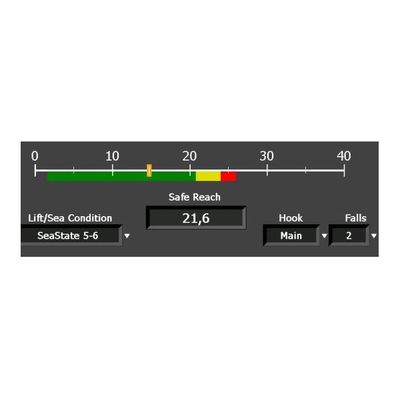 The Mipeg X is expandable and flexible. The Safe Reach Indicator may be selected and displayed as a standard option in the Safe Load Indicator package. The Safe Reach feature may be selected on the Mipeg X display. Using an easy to understand horizontal bar graph, it will not only show the operating radius but also how far you can safely go – boom down with the Safe Working Load (SWL) of the operating condition. The Safe Reach will remove any guesswork allowing the lift cycle to be planned. This may help to increase productivity, save time without compromising safety limits.