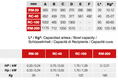 Motores - Motors - Motoren - Motore - Moleurs: III. 23O400V, 50 Hz (220-380V, 60Hz) II, 230V 50 Hz (110-220V, 60Hz) Peso Nolo - Net Weight - Netto Gewicht - Pesso Netto - Poids net.