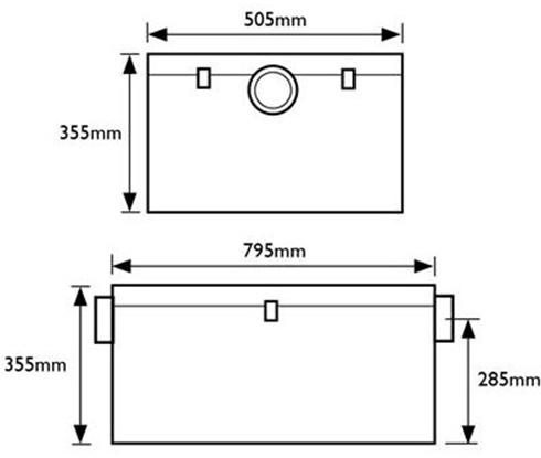Flow Rate Ltrs/min: 57. Fat Retention (KG): 67. Capacity Ltrs: 115. Inlet: 50mm. Outlet: 50mm.