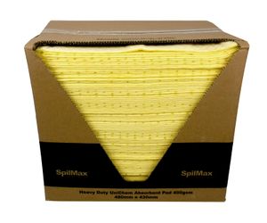 SpilMax 400gsm UniChem Absorbent Pads offer the highest absorbency rate due to their heavier weight. UniChem pads are yellow and work as both a Universal absorbent and Chemical absorbent to clean up a wider range of liquids. They will absorb water, bodily fluids, oils, fuels, diesel, coolant, general workplace chemicals and common agricultural chemicals, oxidisers, acids and caustics. Since these absorbents also pick up water, they are not recommended for oil on water spills. UniChem Absorbent Pads are great for everyday use in workshops or in spill kits. Ideal for cleaning up small spills and equipment leaks and wiping down equipment, tools or drum tops. These pads are manufactured from melt-blown polypropylene. They have dimples and scrim for greater durability. They do not lint or tear easily. Pads can be wrung out and reused many times during spill cleanup.Most popular related searches