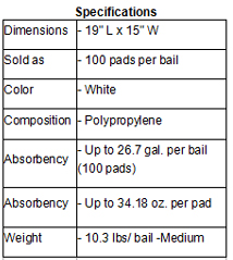 Meltblown Absorbent Pads for Oil, Gas, Diesel and other Hydrocarbons Single Weight (Bails of 200 pads), Medium or Heavy Weight (Bails of 100 pads). Quick, Effective Cleanup of Oil Spills on Land or Water Fast-Wicking, Absorbs Overspray and Spills — Helps Keep Floors Dry and Safe, Fast-Acting for Quick Response.
