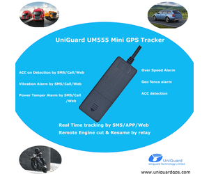 2G UniGuard Mini GPS Tracker UM555 1.ACC on Detection by SMS/ Call/ WEB 2.Vibration Alarm by SMS/ Call/ WEB 3.Power temper Alarm by sms /call /web 4.Real time tracking by WEB / APP /SMS 5.Over Speed Alarm by sms /call/ web 6.Remote engine cut & resume by relay Uniguard Technology Limited is the leading China manufacturer offering GPS tracker, GPS Vehicle Tracker, Mini GPS Car Tracker, GPS Personal Tracker, Solar Powered GPS Tracker, GPS Pet Tracker, GPS Camera Tracker, GPS Fuel Tracker , GPS Padlock , GPS Speed Limiter, GPS speed governor, GPS OBD II Tracker, which integrate advanced technology and telecommunication skills. We are proven supplier with superior quality, competitive price and experienced assistance. Uniguard Online GPS tracking system allow user to real-time track, monitor and manage the fleets or assets anywhere, anytime. The system provides an integral and complete solution, being able to meet each user’s settings and requirements.Model: UniGuard UM552