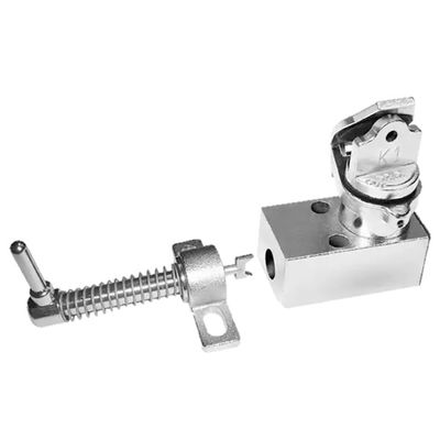 All Type DM interlocks have two parts; a main body with one or two cylinders and a latch bolt with chain (or spring latch). When the latch bolt is separated from the main body, the key(s) is trapped in the lock. When the door on which the interlock is mounted is properly closed, the latch bolt can be inserted into the main body and the key(s) can be turned and released.