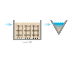 AccuFAS is standardly configured as an FBBR process, combining aeration and structured-sheet media to create an airlift pumping mechanism that not only provides sufficient substrate and oxygen to the biofilm, but also maintains thin film thicknesses.