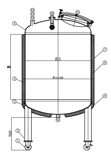 - Transition area of interior wall on tank adopts arc for transition to ensure no dead comer of sanitation.