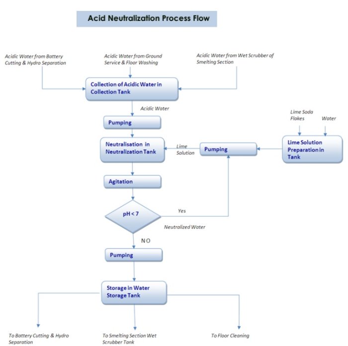 Batteries which are obtained with acid are to be made dry drained before taking into further processing of Battery Cutting/Smelting. This is essential due to the presence of dilute acid in a scrap Lead Acid Battery. The batteries are obtained from various sources & stored at the factory premises from where they are taken to the acid collection & drainage area. The acid from these dead batteries are taken out using Acid Draining Machine.