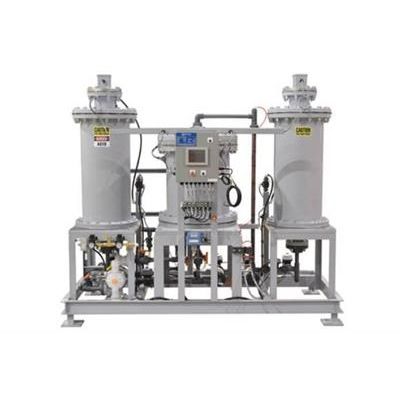 The APU uses a resin sorption process and simple water wash to recover acid. The system is comprised of three subsystems - high performance Spectrum Filter for minimum acid losses during solids, removal, cooling of acid, where required, to prevent dangerous reaction of hot nitric acid and resin, and proven high performance operation of the APU unit itself. The net result is a virtually continuous process for acid purification. With consistent bath chemistry, stainless steel pickling performance is assured. With metals at low levels, further improvements are realized in cooler running temperatures and reduced generation of sludge and fumes.