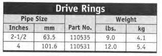 Drive rings are designed to slip over the drive pipe and rest against the pipe coupling. The ring protects the coupling and drive hammer when bumping out or driving the pipe.