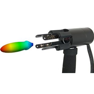 The 3D acoustic intensity probe is for localization of sound sources from 40 Hz. The compass consists of 28 acoustic intensity probes and shows in a 3D display via 3D vectors the direction of the noise sources. Due to the small size of the acoustic 3D intensity probe and the online 3D intensity analysis it is a perfect trouble shooter.