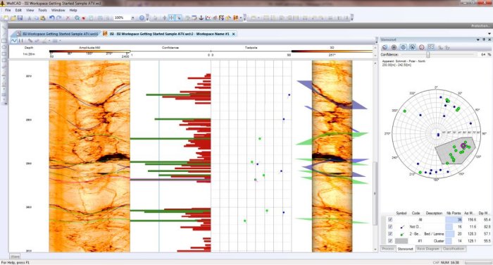 WellCAD Software is an advanced log processing and visualization software recommended for use with all Mount Sopris logging probes. The WellCAD Image & Structure Interpretation (ISI) Workspace, used in conjunction with the QL40-ABI-2G provides:
