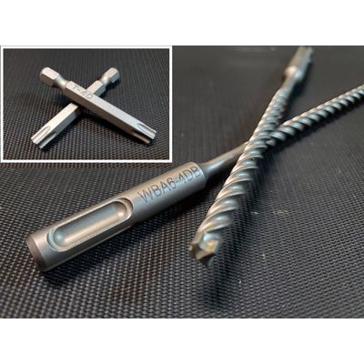 1/4" X 6", 4-cutter SDS Carbide-Tipped Concrete Drill Bits and T-40 TORX driver bits sold individually.