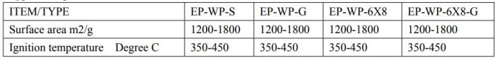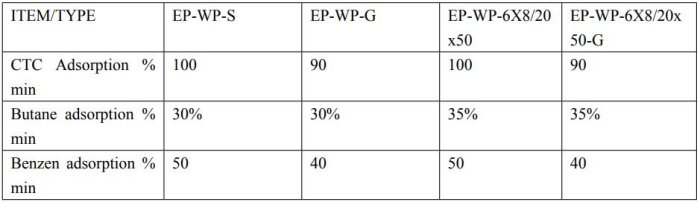 EP-WP(series) : Wood based /coconut based, pellet / granular Activated carbon, solvent recovery application, volatile organic compund adsorption, gas purification.